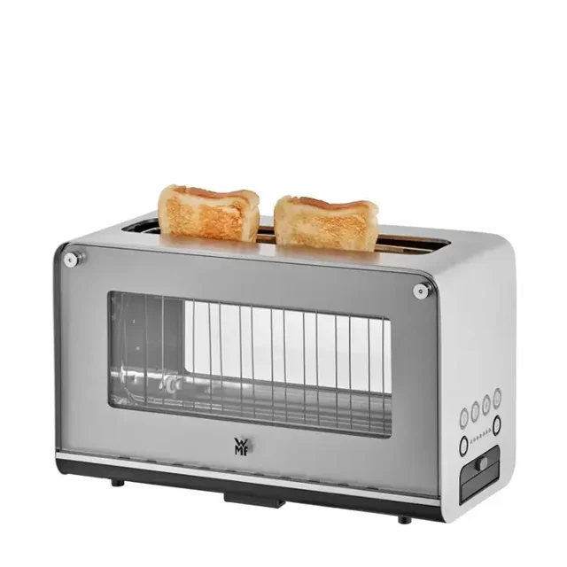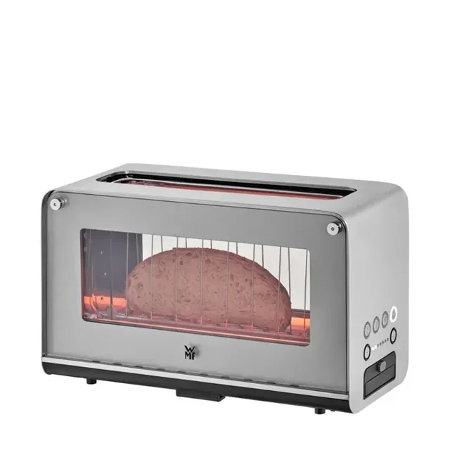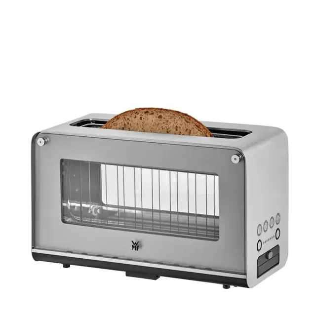 توستر دبلیو ام اف WMF Lono Glass Toaster با تمام شدن برنامه برشته به طور خودکار به سمت بالا حرکت می کند . با شیشه کار شده در بدنه نمای جذابی از فرآیند برشته کردن را ارائه می دهد . صفحات شیشه ای داخلی را می توان به سادگی برای تمیز کردن جدا کرد . 7 سطح مختلف برشته شدن با سطوح برشته متغیر از قهوه ای روشن تا قهوه ای تیره ، بسته به سلیقه شخصی شما . ساخته شده از فولاد ضد زنگ با کیفیت بالا . با توستر شیشه ای WMF Lono ، جلوه بسیار خاصی بر میز صبحانه حاکم است .