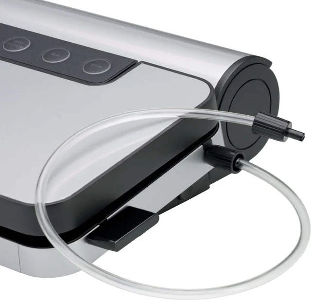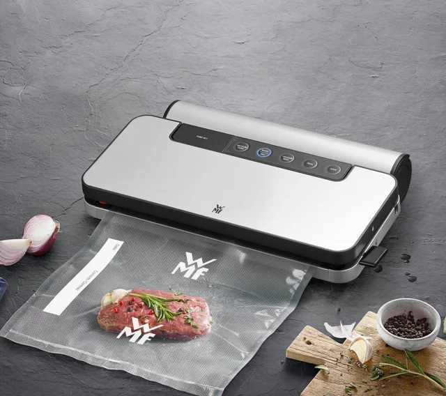 با دستگاه وکیوم مدل WMF LONO Vakuumierer Vacuumizer با خیال راحت مواد غذایی خود را در دراز مدت ذخیره کنید و طعم و همچنین مواد مغذی آن را به طور دائم حفظ نمایید همچنین استفاده از 5 دکمه عملکرد کار را بسیار آسان می نماید . عملکرد اتوماتیک دوگانه برای غذا های مرطوب و خشک با دستگاه پیشرفته وکیوم با بدنه فولاد کروماگون زیبایی ویژه ایی به آشپزخانه شما می دهد .