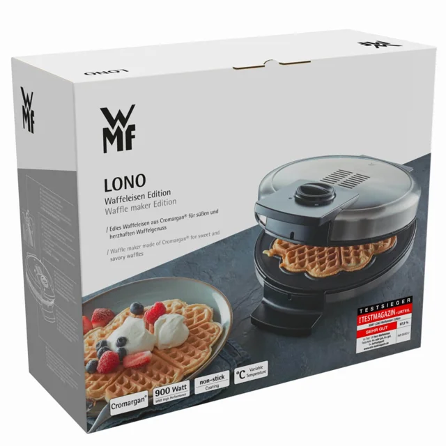 وافل ساز دبلیو ام اف مدل WMF Waffeleisen LONO ساخته شده از پلاستیک و فولاد کرومارگان و طراحی زیبا و منحصر بفرد نظر هر شخصی را به خود جلب می کند.به دیلیل نچسب بودن جنس داخلی نیازی به استفاده زیاد روغن و وافل با کیفیت و سالمی را می توانید پخت کنید.و مزیت اصلی WMF Waffeleisen LONO آن دارای تنظیمات برشتگی وافل است که می توانید به هر میزان دلخواهی وافل خود را اماده کنید.
