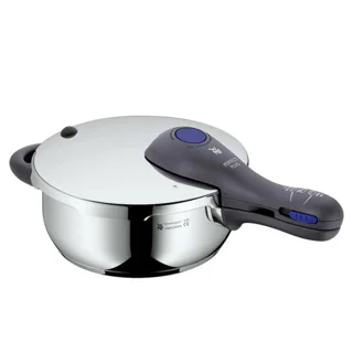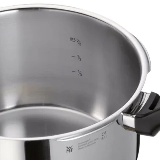 زودپز دوقلو WMF مدل Perfect Plus, 3L-6,5 L دارای 2 قابلمه و یک درب مشترک خروج خودکار بخار اضافه و ایمنی را برای باز شدن درب را فراهم می کند . داخل زودپز مقیاس اندازه گیری درج شده است تا آشپزی را راحت کند . نشانگر سازگاری با 2 کد رنگی برای تنظیم پخت و پز (110 درجه سانتیگراد/119 درجه سانتی گراد) . دسته درب قابل جدا شدن جهت نظافت ساده است . با پخت به صورت تجمع بخار با شعله بسیار کم انرژی را حدود 50 درصد و ویتامین ها و مواد مغذی و مواد معدنی را حفظ می کند .
