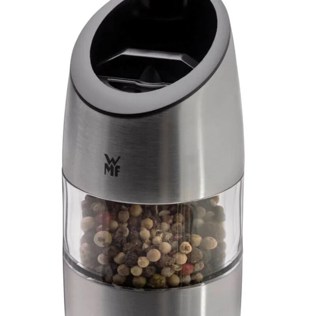 فلفل و نمک ساب دبلیو ام اف مدل WMF Electric mill ساخته شده از شیشه،استیل و فولاد کرومارگان ضد زنگ و ضد خش باعث شده زیبایی منحصربه فردی داشته باشد.نحوه کار با این مدل فلفل و نمک ساب دبلیو ام اف WMF Electric mill اتوماتیک می باشد و به صورتی که شما فلفل و نمک ساب را کج می کنید شروع به سابیدن می کند و به محض اینکه آن را به حالت قبل برمی گردانید عملیات سابیدن متوقف می شود.دیگر مزیت های این مدل WMF Electric mill به تنظیم کردن ساییدن به دانه های ریز و درشت می باشد که این کاربه روش سنگ زنی انجام می دهد