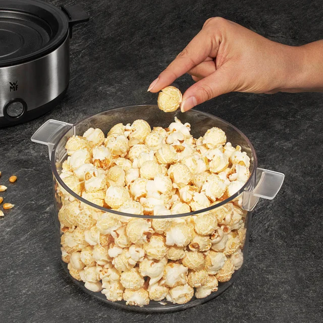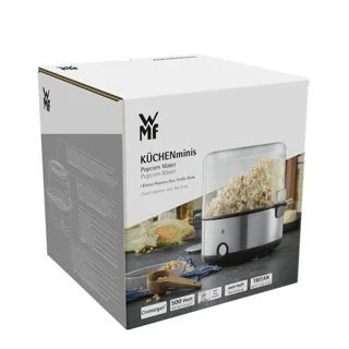 صرفه جویی در فضا و برق و ذخیره سازی آسان و عملکرد سریع با فشردن یک دکمه ، دستگاه گردان پاپ کورن مدل WMF KITCHENminis Popcorn Maker شروع به کار می کند و حتی عطر آن در فضا میپیچد و در عرض چند دقیقه نتیجه می دهد . درب دستگاه را می توانید به عنوان یک ظرف سرو شیک نیز استفاده کنید . کاسه ساخته شده از Tritan با کیفیت بالا به صورت نچسب عمل می کند و به راحتی تمیز می شود . مکانیزم چرخشی روی صفحه اطمینان می دهد که ذرت را با کمترین چربی آماده می کنید .