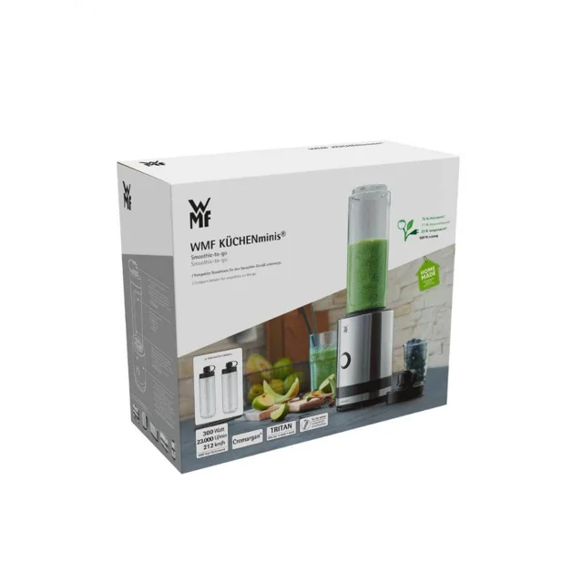 مخلوط کن و اسموتی ساز دبلیو ام اف مدل WMF KITCHENminis smoothie-to-go در آشپزخانه شما لذت آور است و پیشنهاد بسیار کاربردی و حرفه ایی مخصوصا برای ورزشکاران می باشد.ابزار آشپزخانه که با طرحی ماهرانه که دارای کیفیت استیل کرومارگان ساخته است و البته همچنین مجهز به بالاترین فناوری حرفه ایی WMF هستند و متناسب با موتور قدرتمند که آنها را بسیار حرفه ایی می کند .علاوه بر این تیغه فولادی WMF نوید یک نتیجه بی نهایت در مخلوط کردن را می رساند .