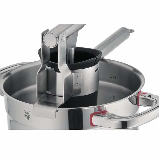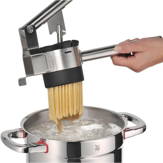 خلاق باش ! با استفاده از چند پرس چند منظوره از سری WMF Profi Plus می توانید اسپاتل ، ناوچی و بسیاری از غذاهای خوشمزه دیگر را که از خمیر یا سیب زمینی خانگی تهیه شده است را تهیه کنید. به سادگی خمیر را در ظرف پلاستیکی قرار دهید تا نیمه پر شود و سپس پرس را فشار دهید . هر دو ظرف پلاستیکی قابل جابجایی و ساخته شده از Cromargan® ضد زنگ بهداشتی ، بسیار پایدار بوده و می توان آنها را در ماشین ظرفشویی تمیز کرد . همه وسایل آشپزخانه Profi Plus دقیق و ضد آب ساخته شده اند .