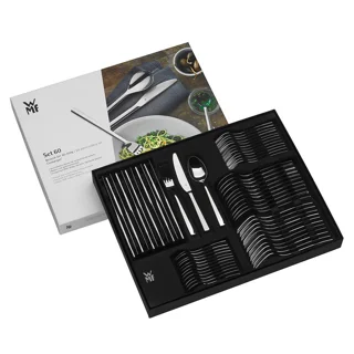 سرویس قاشق و چنگال 60 پارچه دبلیو ام اف مدل WMF Palermo شامل قاشق و کارد و چنگال غذا خوری برای 12 نفر ،12 عدد قاشق قهوه و چای خوری و 12 عدد چنگال میوه خوری را ارائه می دهد .زیبایی تضادها: با سرویس قاشق و چنگال 60 پارچه دبلیو ام اف مدل WMF kent plus ، هر تجربه غذاخوری را به تجربه ای چشم نواز تبدیل کنید. با الهام از معماری مدرن و سطح صیقلی که یادآور جواهرات گرانبها هستند . این مجموعه کارد و چنگال ارگونومیک با ارائه زیبایی شناسی ظریف و جسورانه و در عین حال جاودانه ، کاملاً در هر دستی قرار میگیرد.