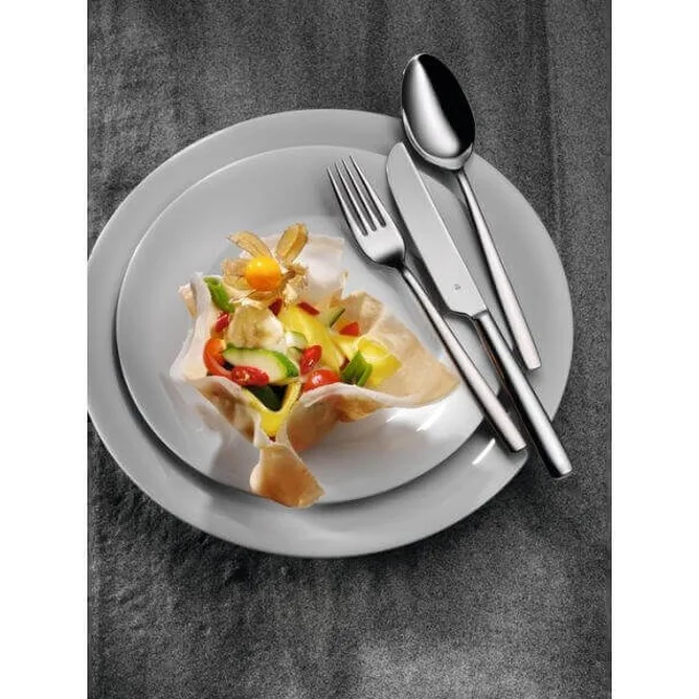 سرویس قاشق و چنگال 60 پارچه دبلیو ام اف مدل WMF PALMA شامل قاشق و کارد و چنگال غذا خوری برای 12 نفر ، 12 عدد قاشق قهوه و چای خوری و 12 عدد چنگال میوه خوری را ارائه می دهد . زیبایی تضادها : با سرویس قاشق و چنگال 60 پارچه دبلیو ام اف مدل WMF Alteo ، هر تجربه غذاخوری را به تجربه ای چشم نواز تبدیل کنید . با الهام از معماری مدرن و سطح صیقلی که یادآور جواهرات گرانبها هستند . این مجموعه کارد و چنگال ارگونومیک با ارائه زیبایی شناسی ظریف و جسورانه و در عین حال جاودانه ، کاملاً در هر دستی قرار میگیرد .