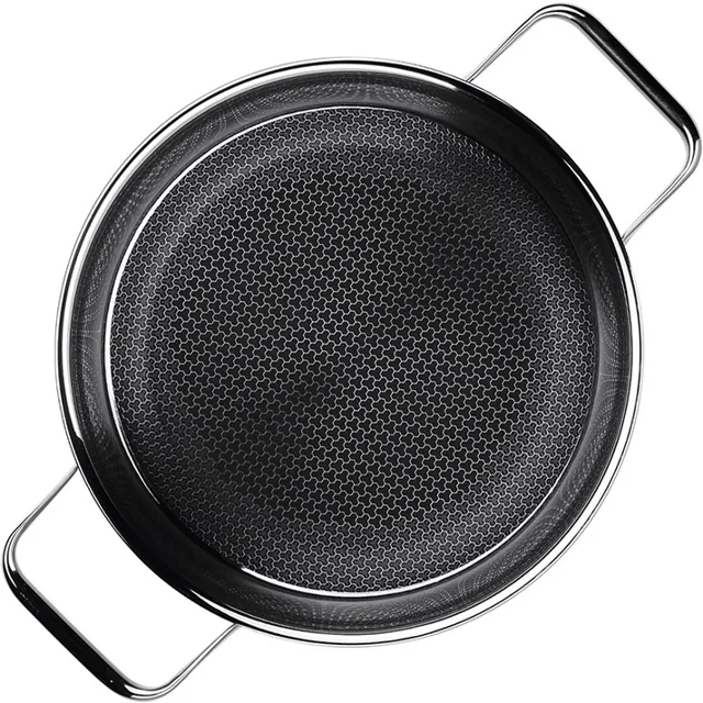 تابه های زنبوری دبیلیو ام اف مدل WMF Profi Resist که متریال آن سه لایه و متشکل از فولاد کرومارگان ، آلمینیوم و فولاد کروم و روکش نچسب ساخته شده انده که جلوه بسیار زیبایی به آشپزخانه شما می دهد. به دلیل ساختار زنبوری شکل آن که شبکه های آن برجسته است و مانع لمس قاشق با کف نچسب تابه می شود و مقاوم در برابر گرما و ضد خط و خش است . دیگر مزیت آن توزیع گرما در سراسر تابه به دلیل کف سه لایه که باعث می شود طبخ غذا بهتر و با کیفیت تر شود.